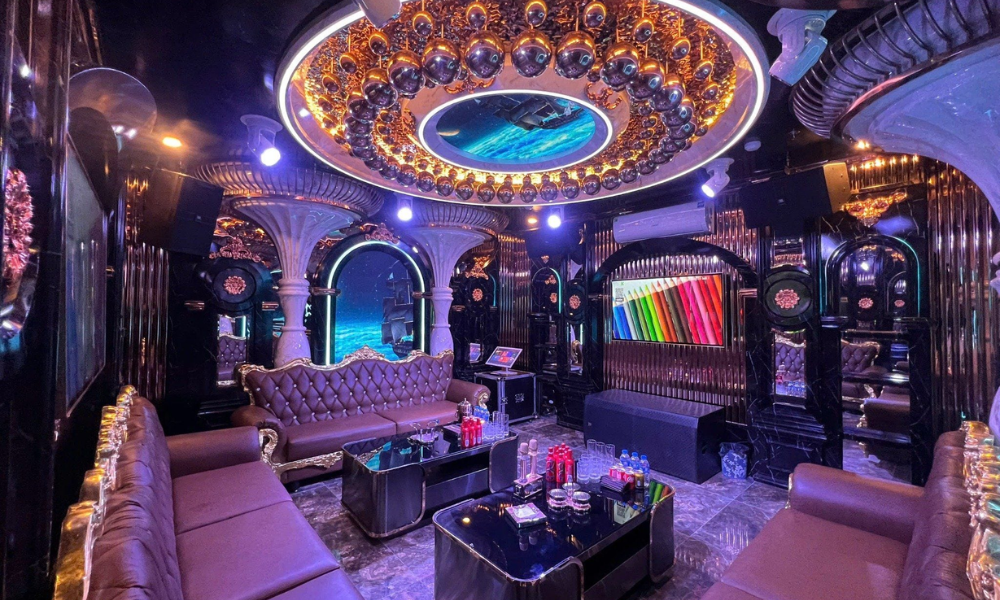 Karaoke Royal Club: Thiết kế lộng lẫy, âm thanh đỉnh cao, thực đơn phong phú đáp ứng mọi nhu cầu tiệc tùng.