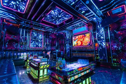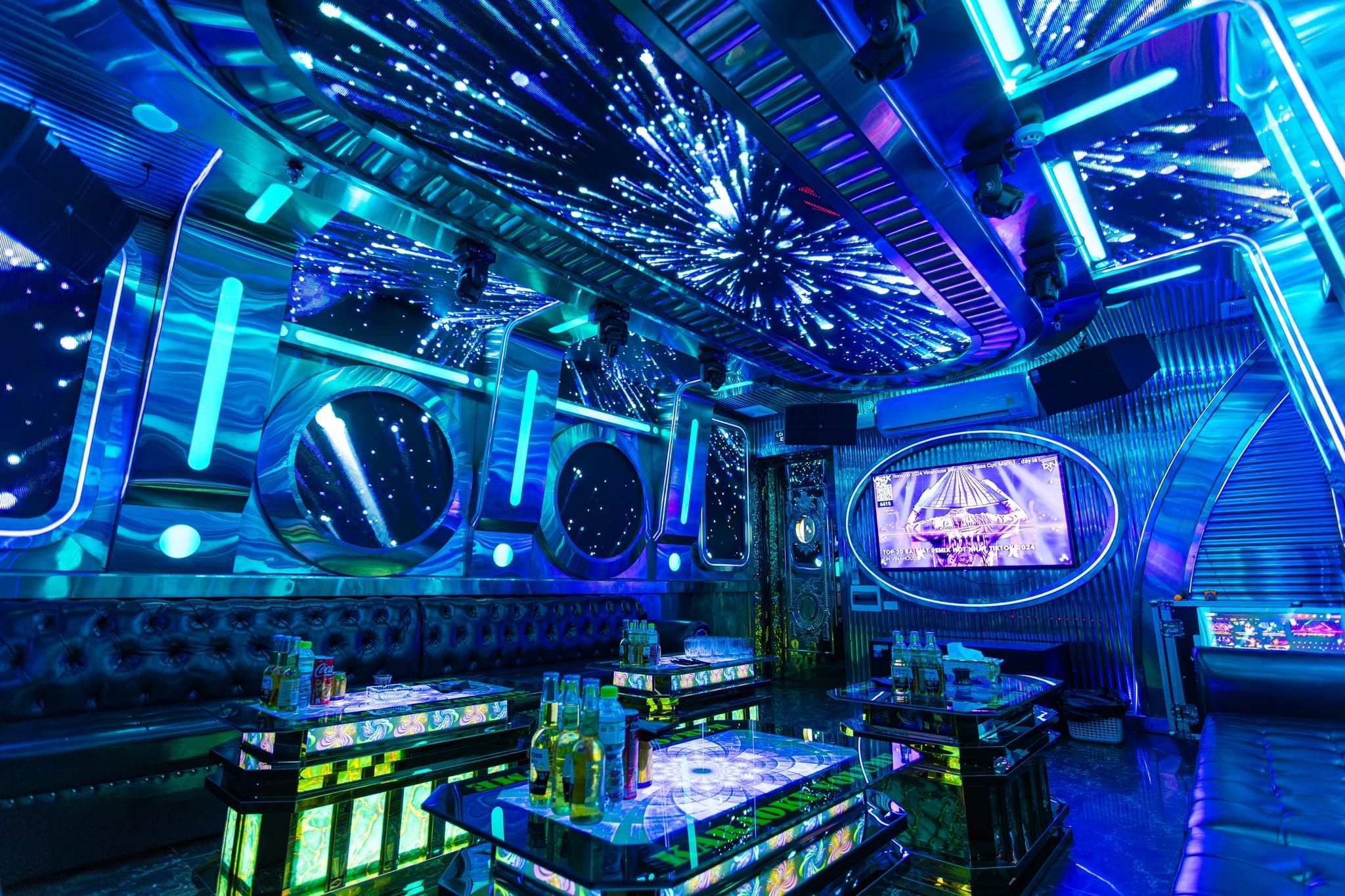 Đến với Mercury, bạn sẽ bị ấn tượng với cách trang trí sang trọng và hệ thống âm thanh, ánh sáng chuyên nghiệp. Dàn loa, mic hiện đại, được nhập khẩu từ Ý cùng với hệ thống đèn đổi màu linh hoạt sẽ mang lại cho khách hàng không gian ca hát tuyệt vời nhất. Đặc biệt, mỗi phòng đều có kết nối với Youtube, mang cả thế giới âm nhạc vào trong căn phòng của bạn.