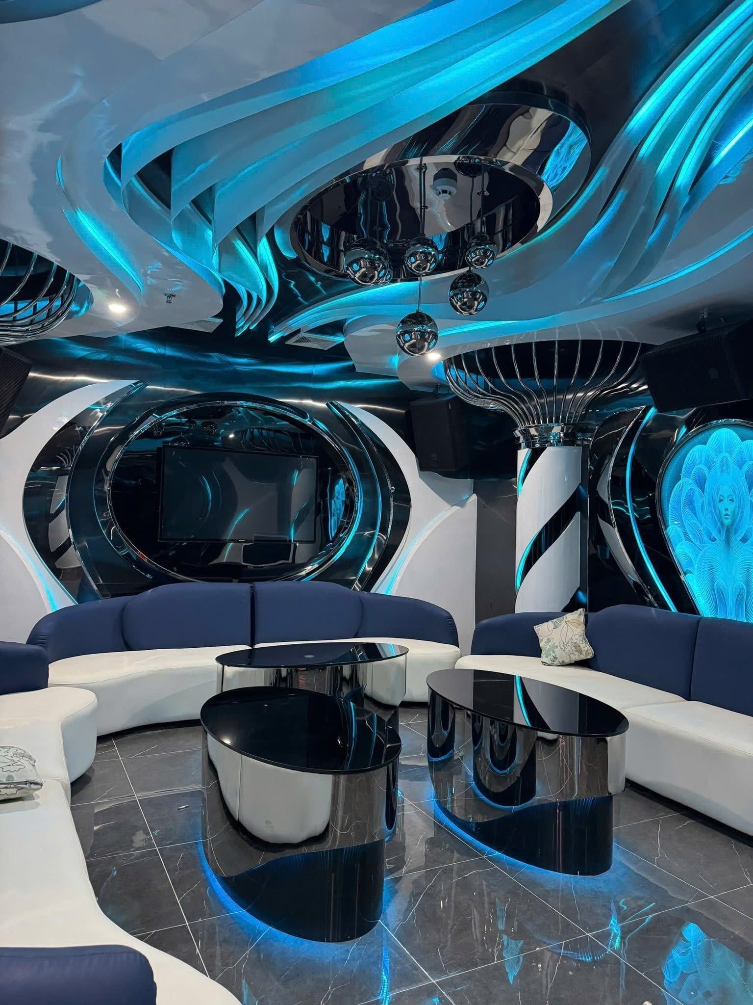 Karaoke Monaco tọa lạc tại số 197-199 Đường CN11, ngay trung tâm khu công nghiệp Tân Bình sầm uất và khu vực dân cư phường Sơn Kỳ. Đúng như tên gọi gợi nhớ đến vương quốc xa hoa, Monaco gây ấn tượng mạnh với phong cách thiết kế Neo-Classical (Tân cổ điển) sang trọng. Không gian bên trong là sự kết hợp tinh tế giữa những họa tiết mạ vàng, đèn chùm pha lê và nội thất sofa cao cấp, tạo nên một bầu không khí vương giả. Với hệ thống phòng hát đa dạng, từ phòng tiêu chuẩn đến phòng Super VIP, Monaco là lựa chọn hàng đầu cho các buổi tiệc sinh nhật, liên hoan công ty hay họp mặt gia đình cần sự riêng tư và đẳng cấp.