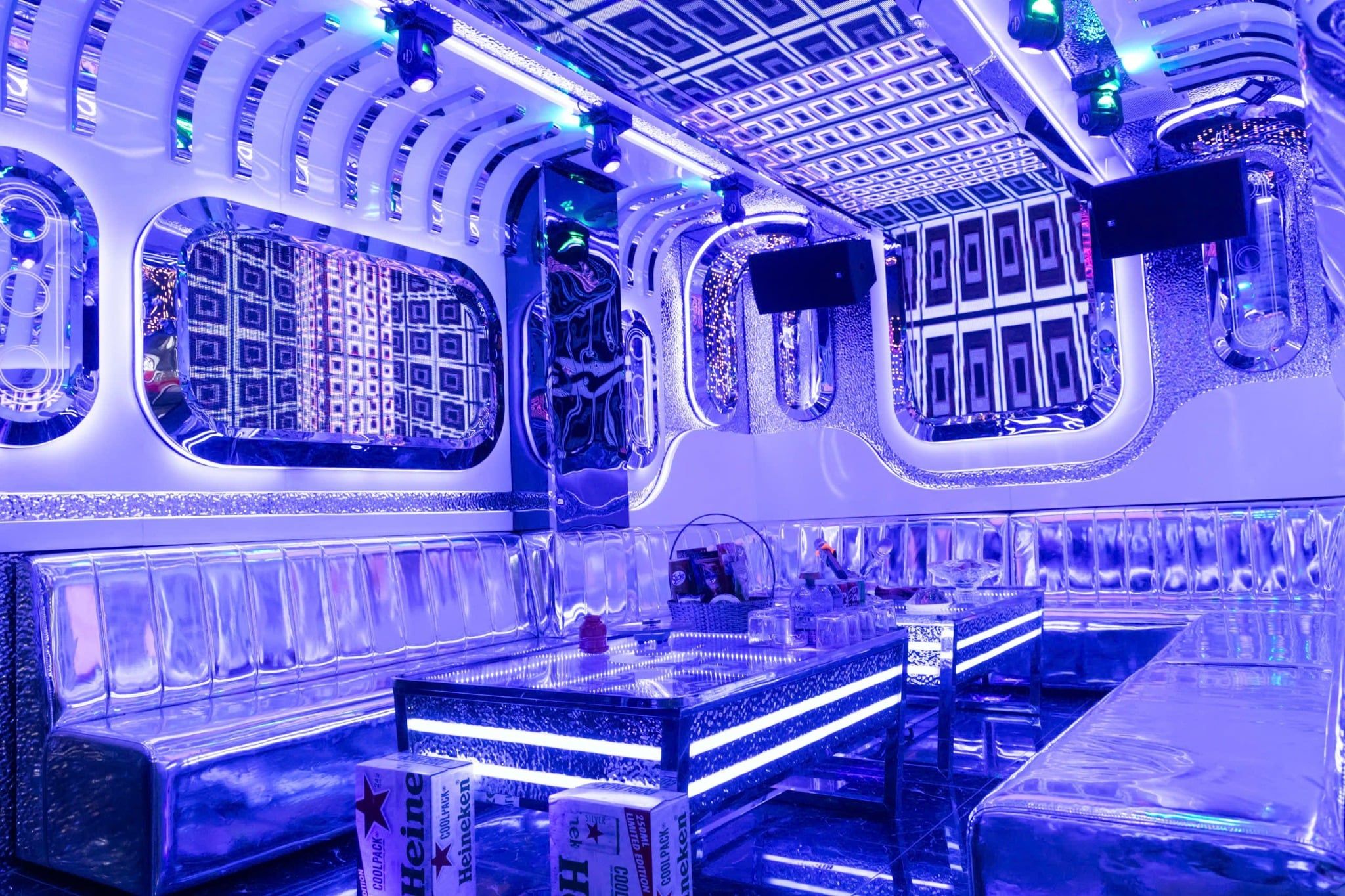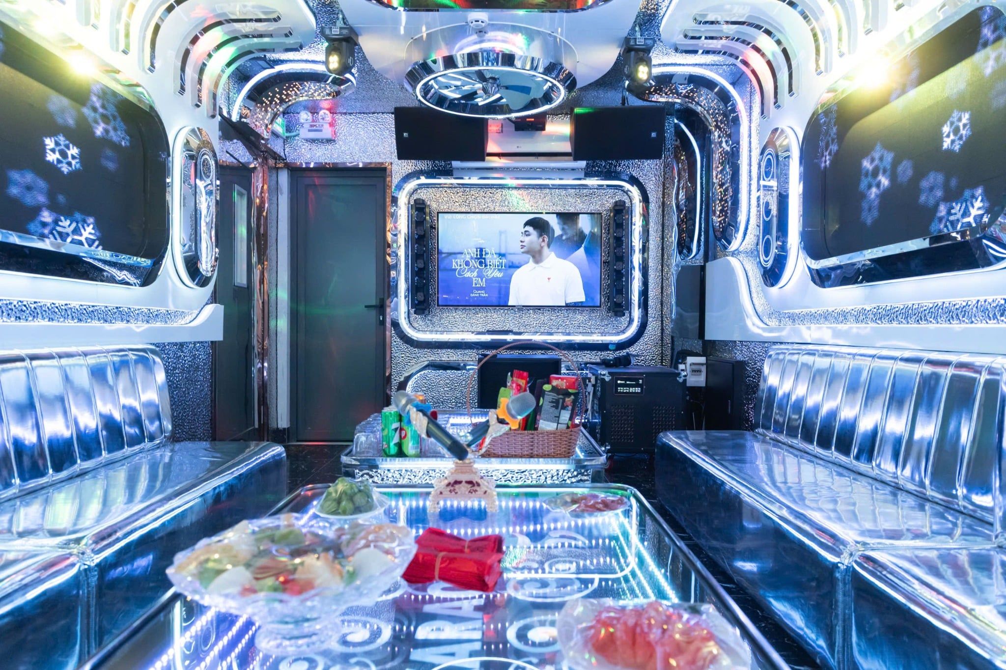 Linh hồn tạo nên sức hút khó cưỡng của Karaoke Nhà Đất chính là sự đầu tư mạnh tay vào hệ thống nghe nhìn tiêu chuẩn quốc tế nhằm mang lại trải nghiệm ca hát hoàn hảo nhất cho khách hàng. Quán trang bị dàn âm thanh kỹ thuật số (Digital Audio) thế hệ mới từ các thương hiệu danh tiếng, mang lại chất âm trung thực, dày dặn và đầy nội lực. Dải Bass sâu chắc kết hợp cùng hệ thống micro chuyên nghiệp giúp lọc âm hoàn hảo và nâng đỡ giọng hát tối đa, khiến thực khách tự tin như một nghệ sĩ đang biểu diễn trên sân khấu thực thụ. Điểm nhấn đặc sắc chính là hệ thống ánh sáng lập trình thông minh với các hiệu ứng biến ảo liên tục theo từng nhịp điệu bài hát, tạo nên một không gian giải trí đa giác quan đầy hưng phấn và sống động.