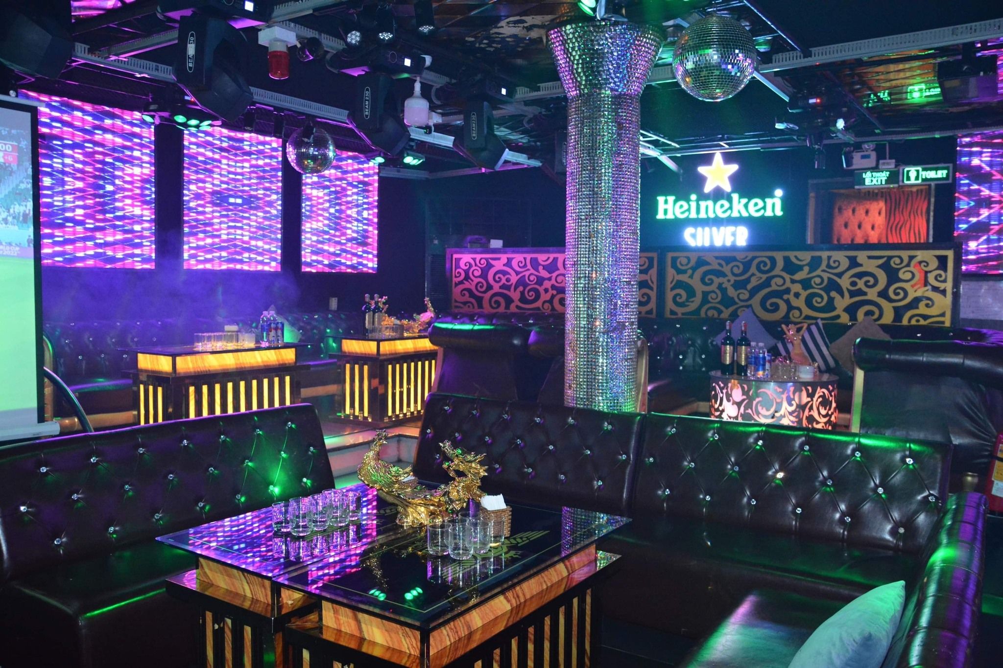 Sở hữu không gian đẹp, rộng rãi và thoáng mát, Night Karaoke mang đậm phong cách sang trọng trong cách bày trí nội thất. Đi kèm với đó là hệ thống âm thanh, ánh sáng chất lượng. Tất cả tạo nên một Night Karaoke đầy cuốn hút và hấp dẫn. Bên cạnh đó, khi đến với quán, khách hàng sẽ được thưởng thức kho nhạc được cập nhật theo thị trường với các thể loại: Vinahouse, G-House, đảm bảo tiêu chí hay và hot nhất.